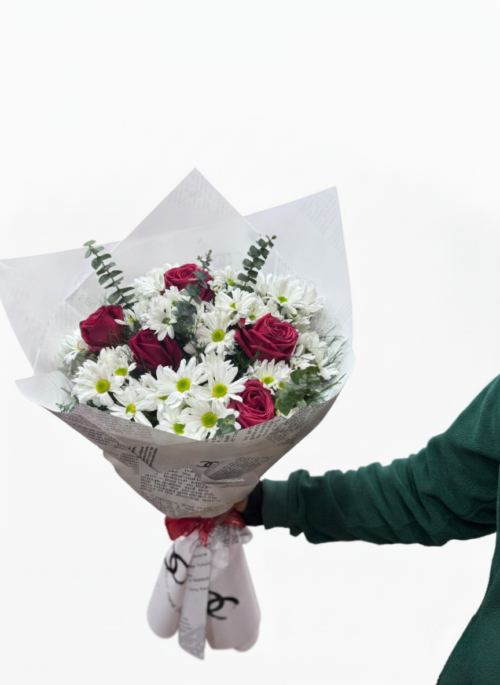 Kırmızı Gül ve Beyaz Papatya Buketi