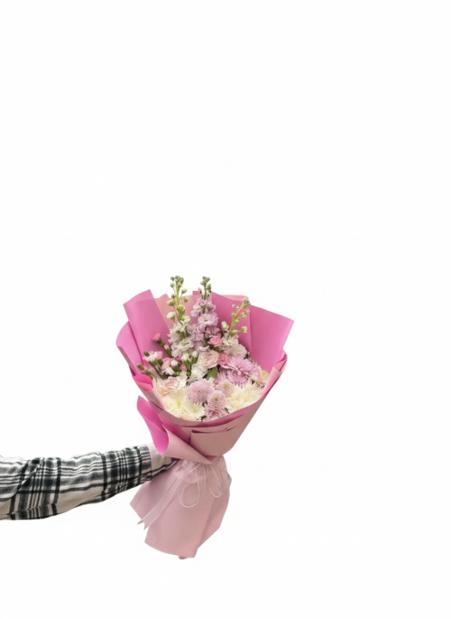Pembe Ambalajda Şebboy ve Kasımpatı Buketi