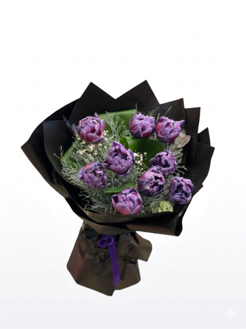 Dramatik Şıklık: Siyah Ambalajda İthal Mor Laleler
