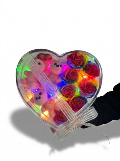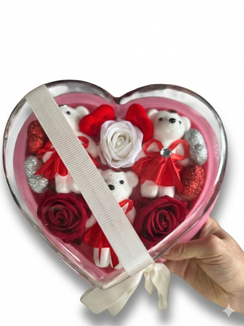 Ayıcıklı ve Atıştırmalıklı Dev Kalp Aranjmanı