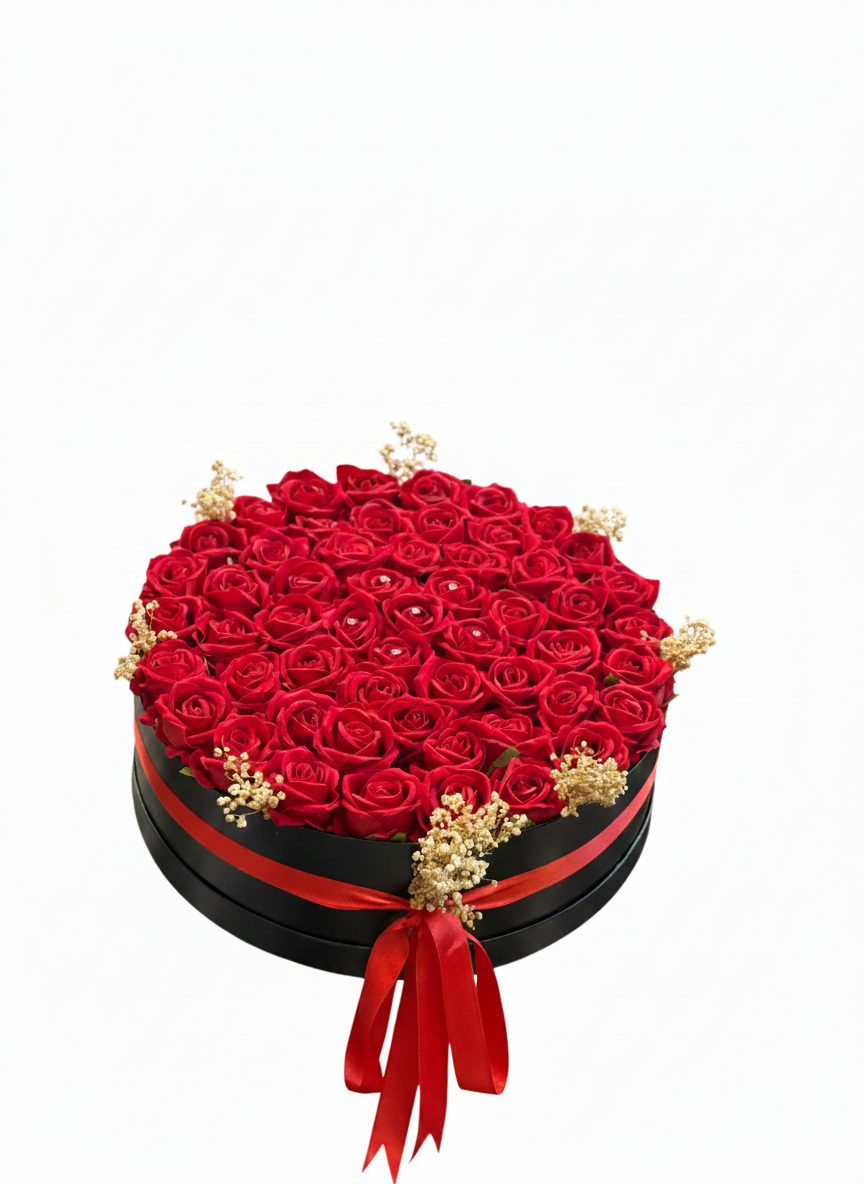 Aşkın Sembolü: Siyah Silindir Kutuda Premium Kırmızı Güller
